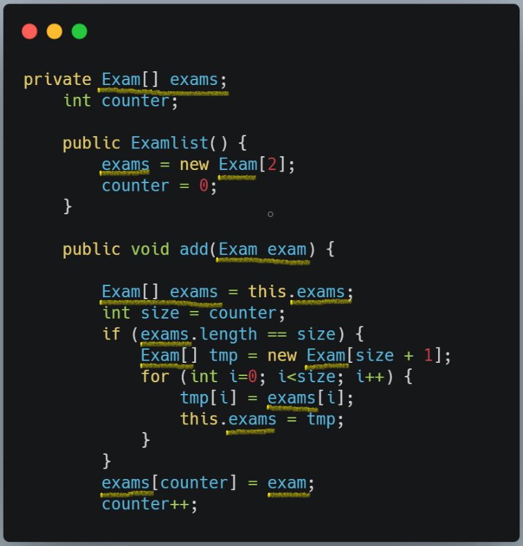 for (int i=0; i<size; i++) { //입력받은 배열값을 임시배열로 옮기고, exams는 임시배열을 참조(길이+1)