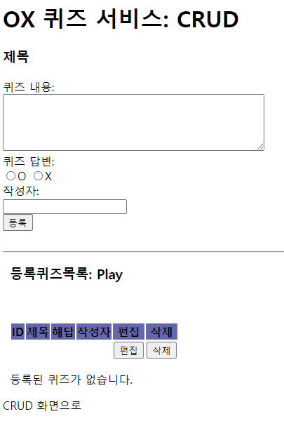 <h1>OX 퀴즈 서비스: CRUD</h1>
