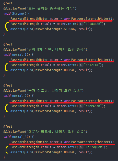 매 테스트마다 PasswordStrengthMeter클래스의 인스턴스를 반복적으로 생성하기 때문에